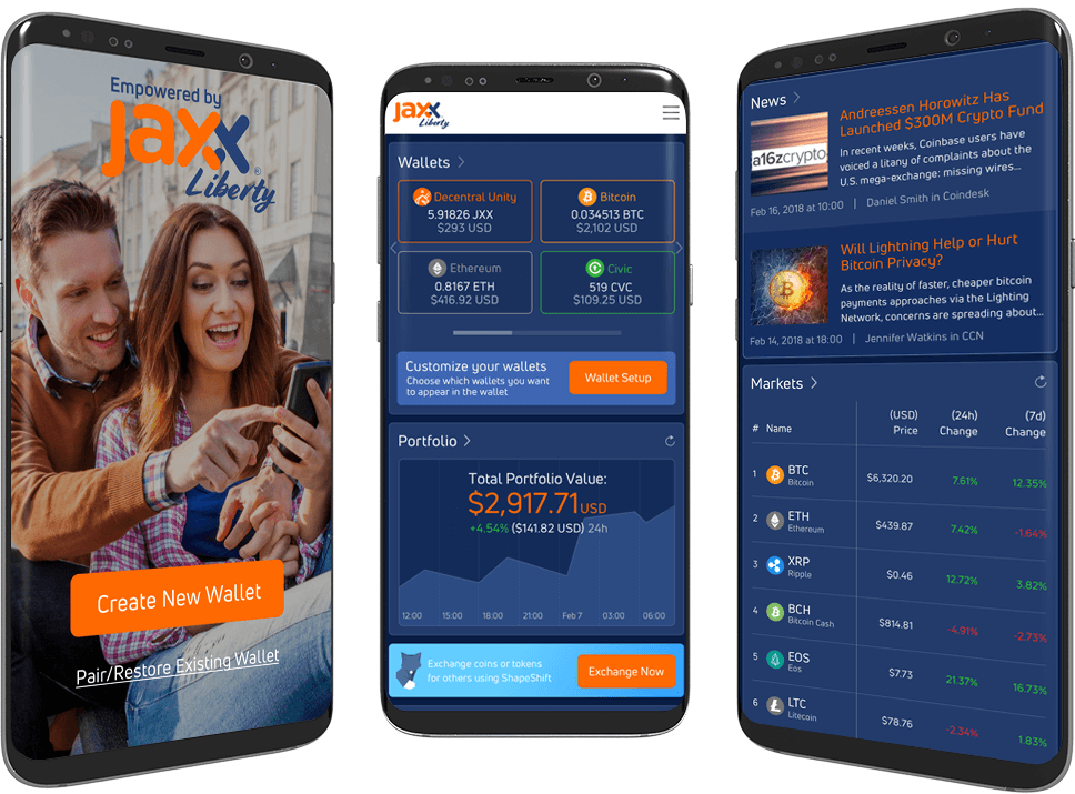 The jaxx liberty wallet supports major crypto assets and token-based assets. As a jaxx liberty blockchain wallet, it connects directly to blockchain networks.